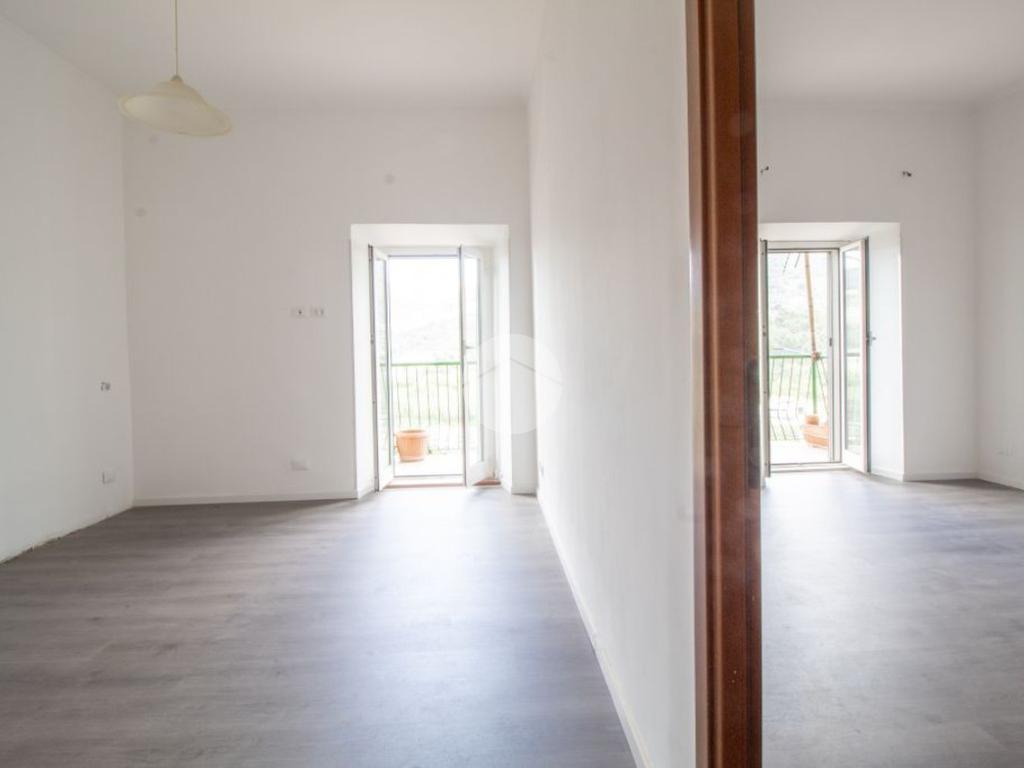 Tutti gli ambienti, ad eccezione del bagno e della sala da pranzo hanno accesso diretto sul balcone, il quale vanta di un ammirevole panorama aperto sul paesaggio e l’area circostante del paese.