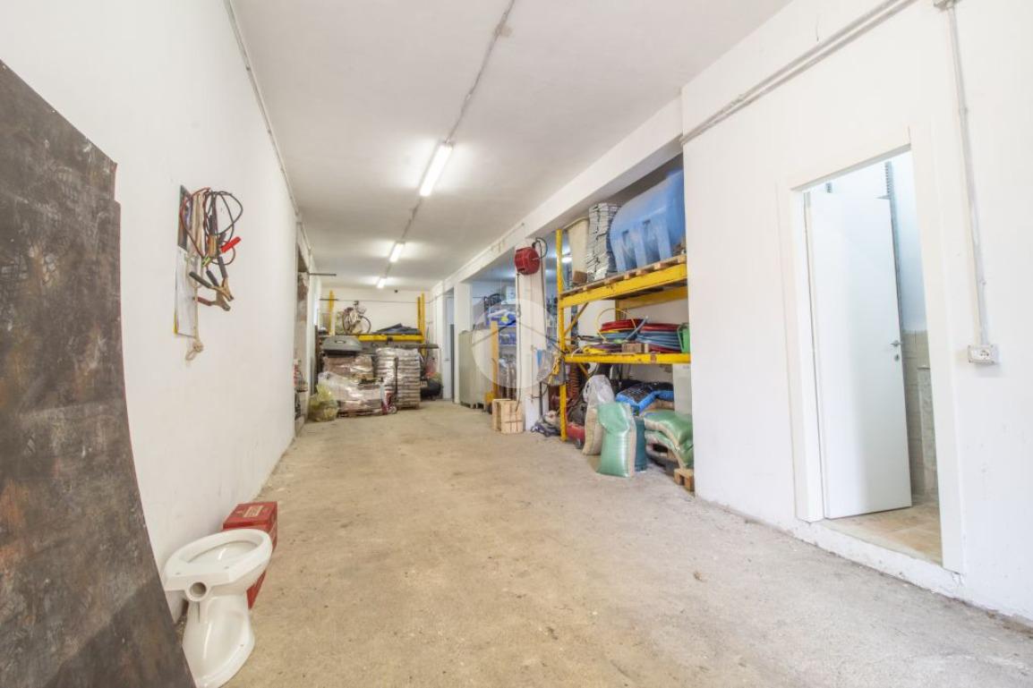 Il locale è dotato di una finestra e di un secondo accesso laterale tramite porta con serranda elettrica, che conduce direttamente alla corte esterna cementata di proprietà.